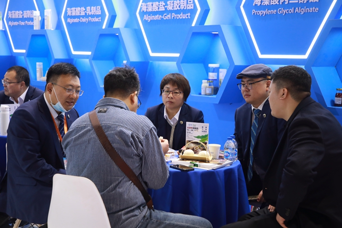 在此次FIC2024展會上,明月海藻集團(tuán)憑借其時尚大氣的開放式展臺設(shè)計(jì),在眾多參展商中脫穎而出。展臺以海洋藍(lán)色為主調(diào),不僅彰顯了公司源于海洋的深厚底蘊(yùn),更展示了其對于環(huán)保、健康的執(zhí)著追求。