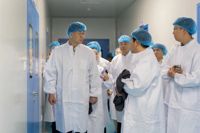 致辭環節后,與會領導共同啟動象征項目投產的水晶按鈕。活動結束,嘉賓一行參觀了明月醫用材料智慧工廠,深入了解海藻醫用材料從研發到生產的全鏈條技術深耕,對自動化產線及國際標準品控體系給予高度評價。