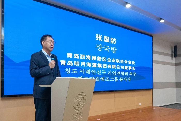 在領導致辭環節,青島西海岸新區企業聯合會會長、明月海藻集團董事長張國防回溯合作初心。他指出,雙方以“打造全球頂級醫療器械企業”為共識,融合明月57年海藻研發積淀與英化學38年傷口敷料技術,這不僅是商業合作,更是面向人類健康的深度攜手。