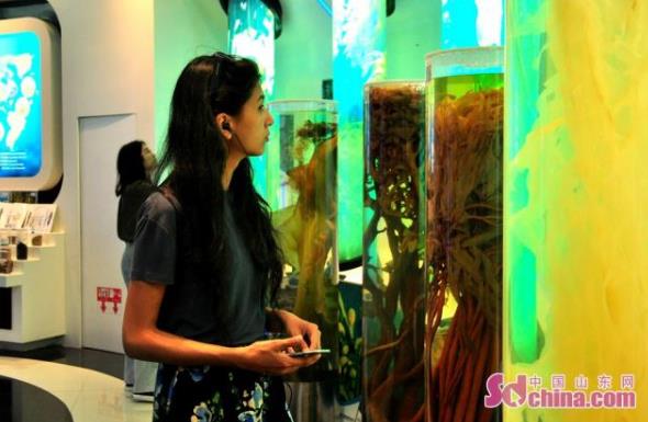在海藻生物產(chǎn)業(yè)館,展示了海藻在日常食品、藥品、保健品、日化用品、護(hù)膚品、海藻有機(jī)肥料、生物醫(yī)用材料等多個(gè)方面的應(yīng)用,通過實(shí)驗(yàn)演示為采訪團(tuán)成員解開它的“真身”,為他們帶來腦洞大開的海藻新生活之旅。